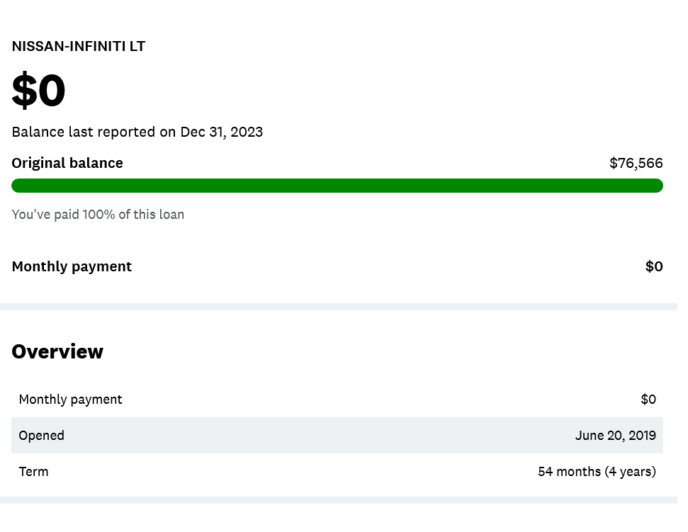 - Closed account / PAID off